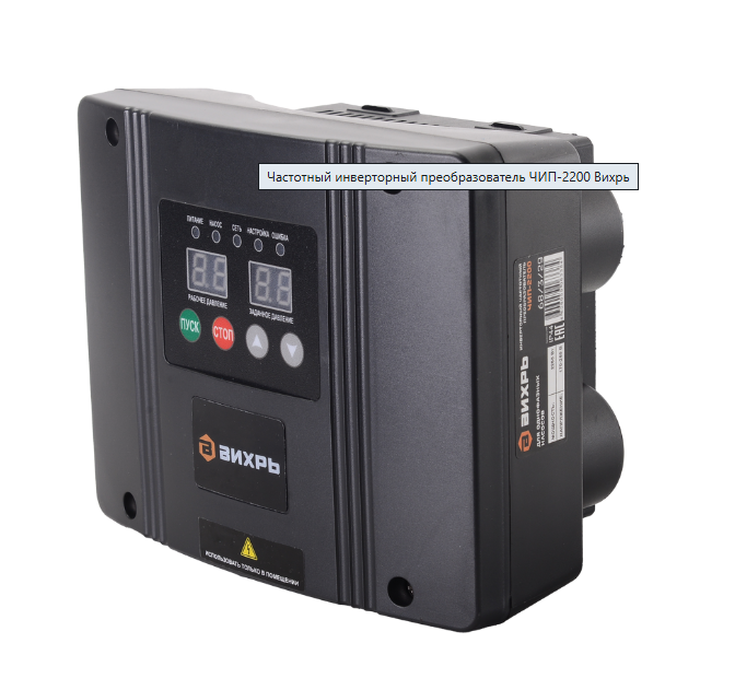 Частотный инверторный преобразователь ЧИП-2200 Вихрь предназначен для точного и энергоэффективного управления однофазными асинхронными электродвигателями водяных насосов различного типа. Прибор обеспечивает поддержание постоянного давления в системе водоснабжения и автоматизацию работы насосного оборудования.
