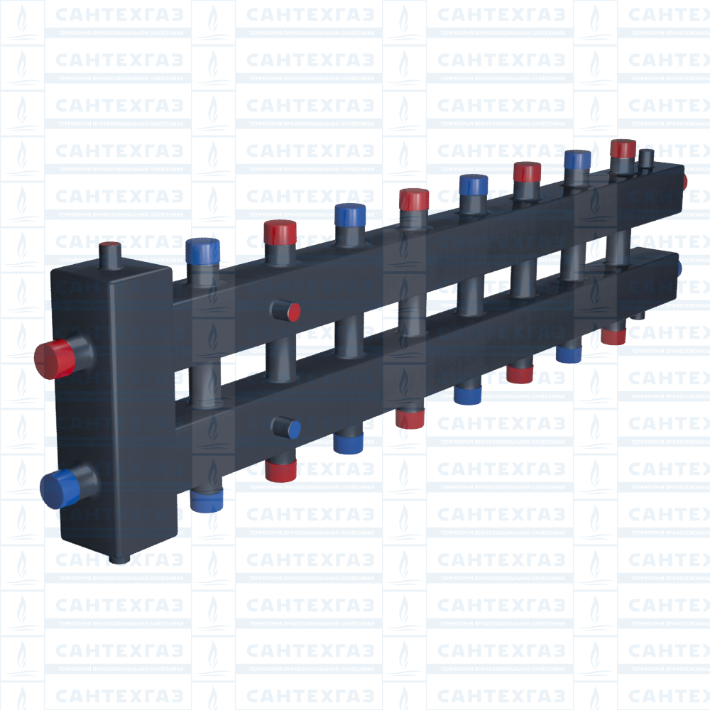 Коллектор с гидрострелкой на 9 контуров ГРУ+КМГ100-9ВУ от Российского производителя RISPA — является гидравлическим разделительным узлом, который совмещен в единую конструкцию с коллектором модульного типа.Общая схема — горизонтальная, гидрострелка может обслуживать котел мощностью до 100 кВт. Потребители подключаются универсально (сверху, снизу и сбоку: схема 4+4+1).