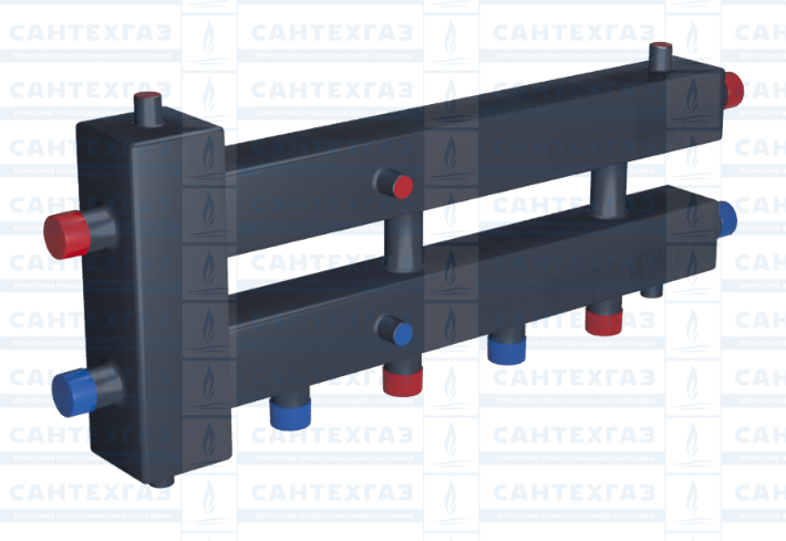 Коллектор с гидрострелкой на 3 контура ГРУ+КМГ60-3ВН от Российского производителя RISPA — является гидравлическим разделительным узлом, который совмещен в единую конструкцию с коллектором модульного типа.Общая схема — горизонтальная, гидрострелка может обслуживать котел мощностью до 60 кВт. Потребители подключаются снизу и сбоку (2+1).